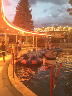 They did get to do this bumper boats ride. They had disabled the water gun part of the boats (not sure why), so it was a little more boring, but they still enjoyed it.